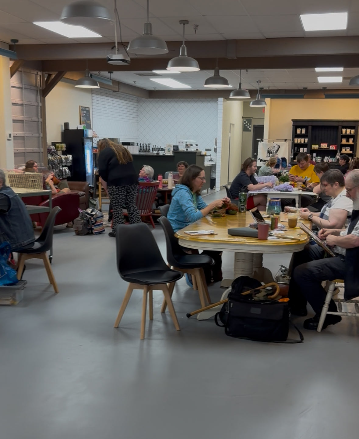 Feel free to make yourself at home in our cozy lounge, affectionately dubbed "the living room," available whenever we're open. Bring along a project and a pal to share in the cozy vibes!