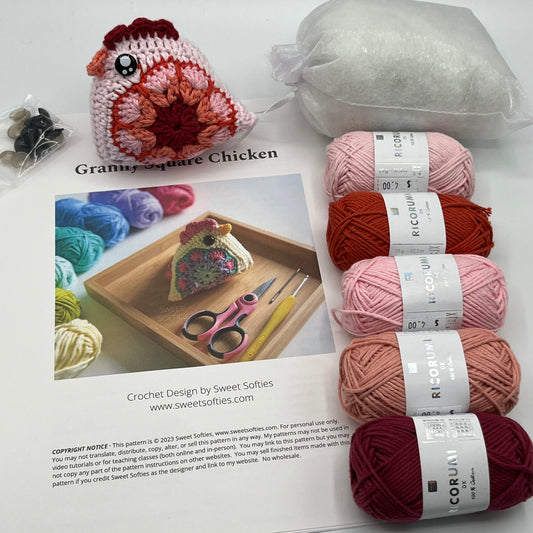 Granny Square Chicken Crochet Kit – Makes 3 Chickens