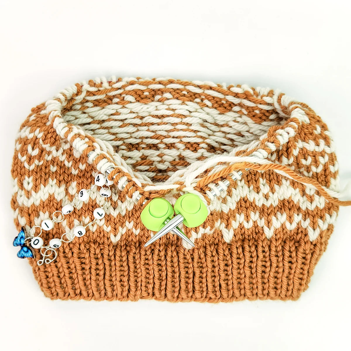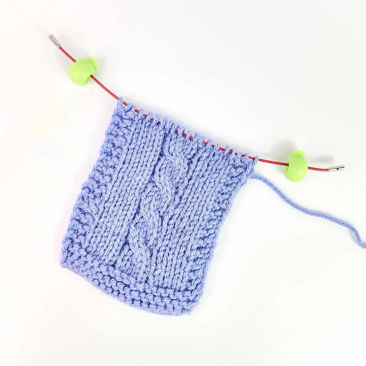 - Press the button and slide them on your needles to lock your stitches securely in place between knitting sessions