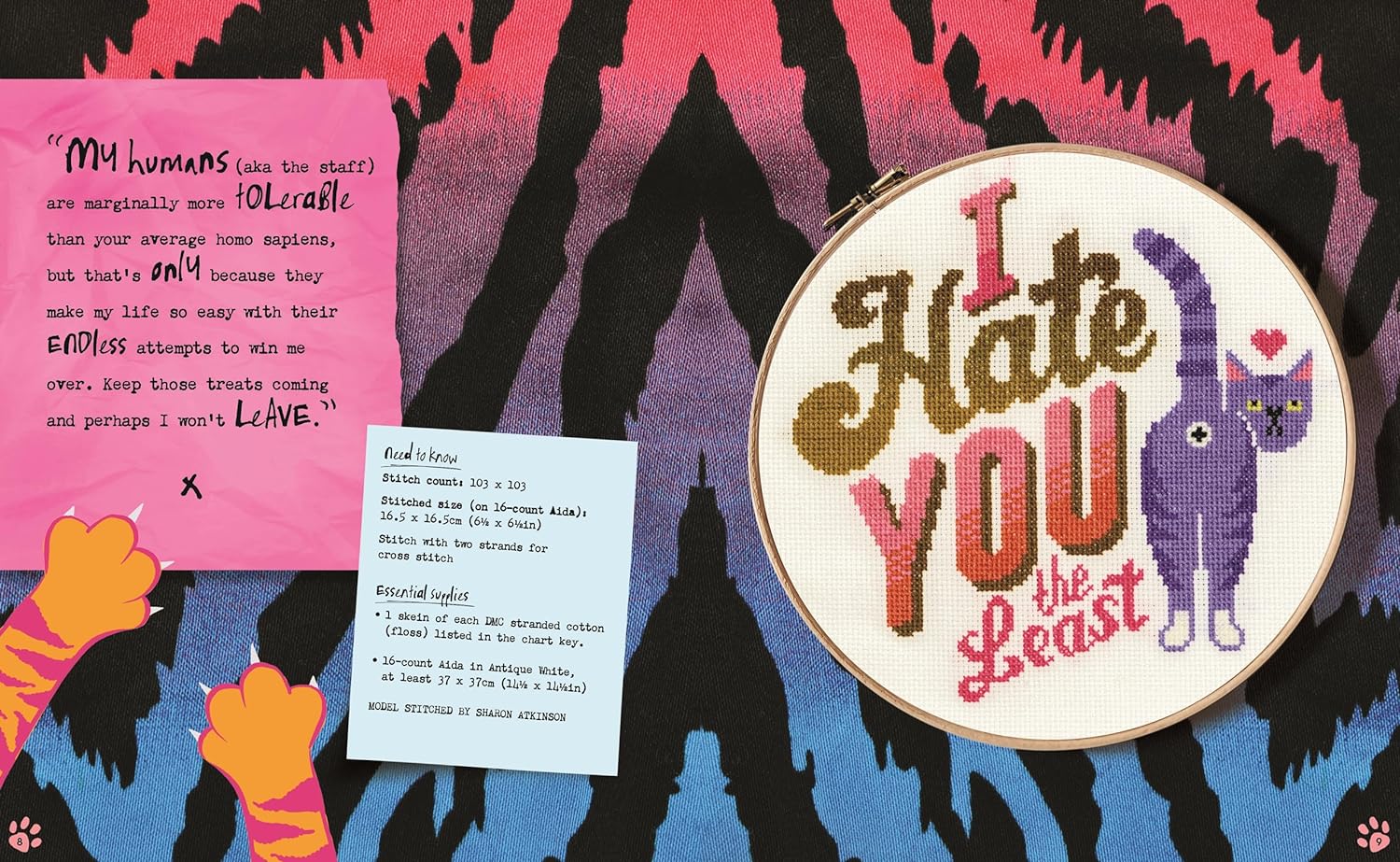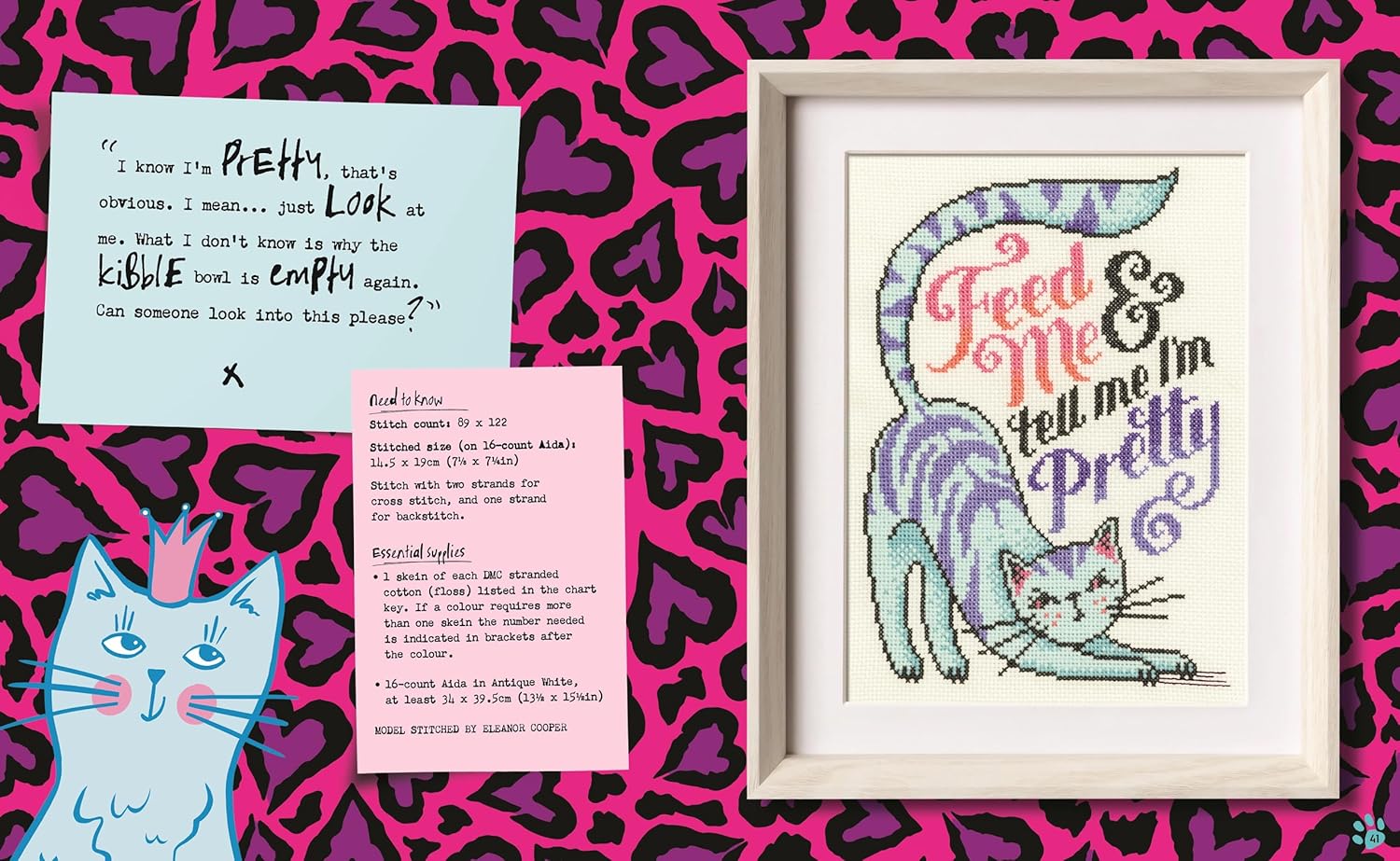 Luckily for you Cross stitch with Cattitude is here, a book packed with 20 fresh, sassy and snarky designs celebrating us feisty felines and all of our delightful(!) quirks, and all from best-selling cross stitch designer and bonafide cat lady, Emma Congdon.