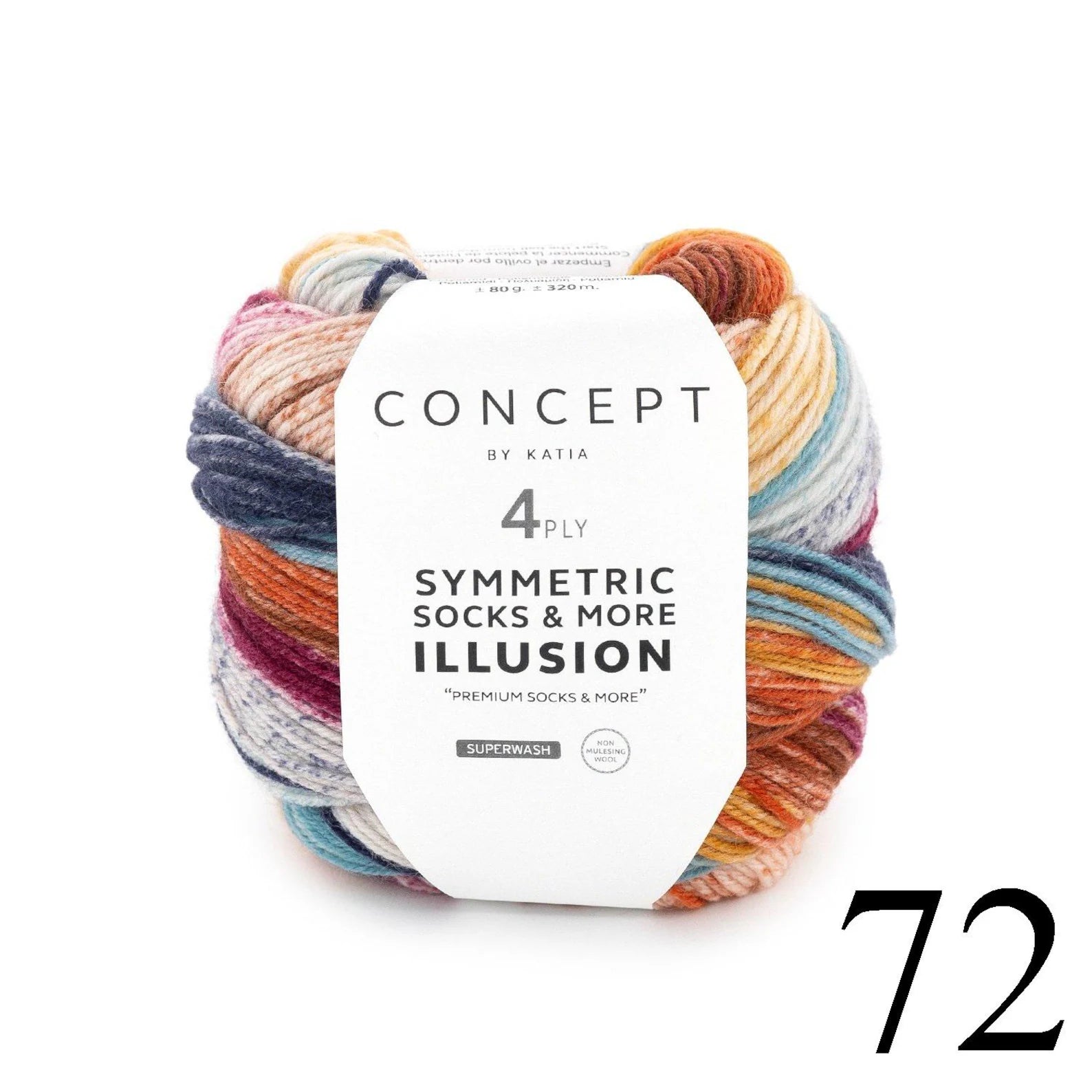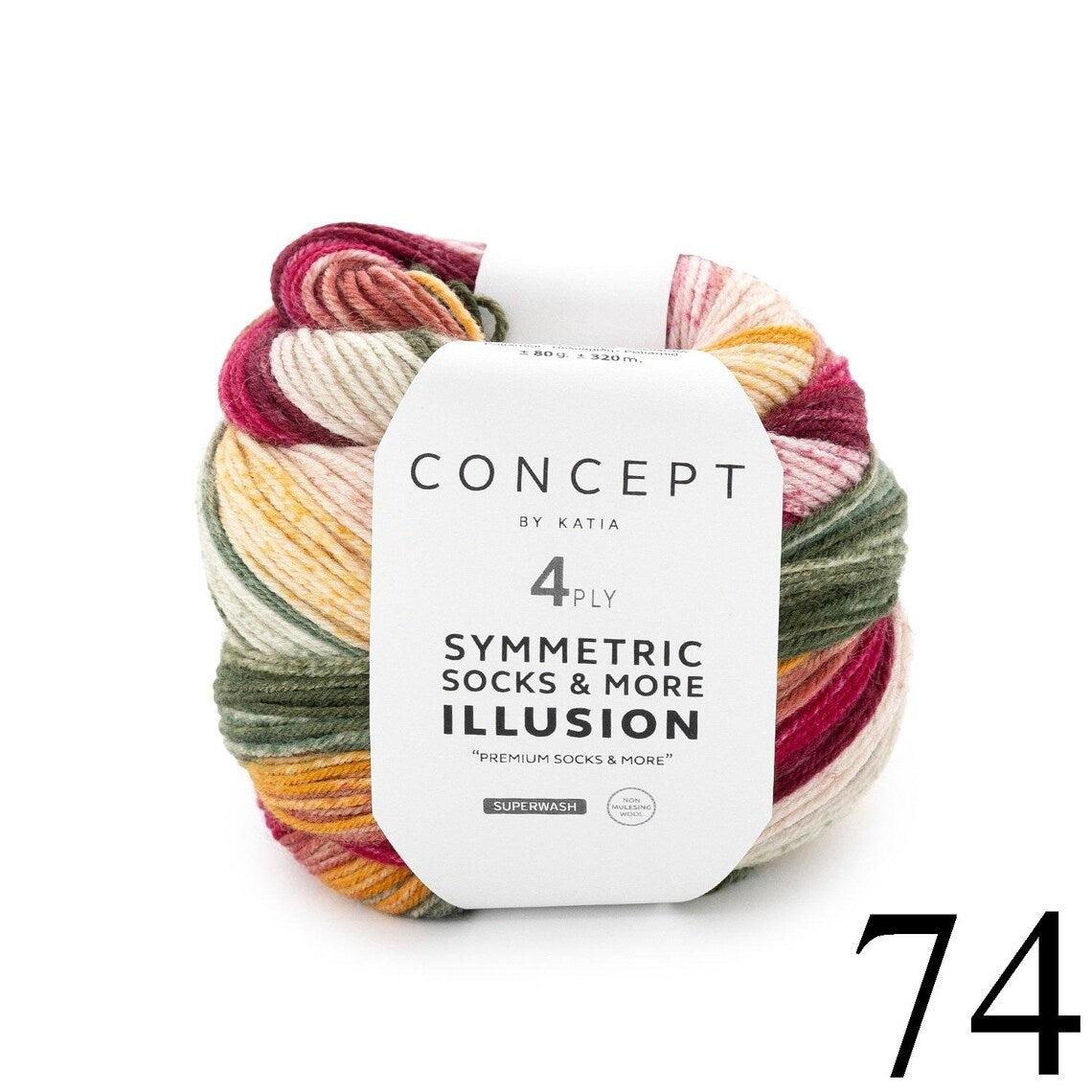 Katia Symmetric Socks is a self-patterning yarn designed especially for sock lovers who want perfectly matching pairs without the fuss. With its clever colour sequence, each ball allows you to knit two identical socks easily – no guesswork required. Simply follow the colour repeat and enjoy the satisfaction of a balanced, symmetric design every time.