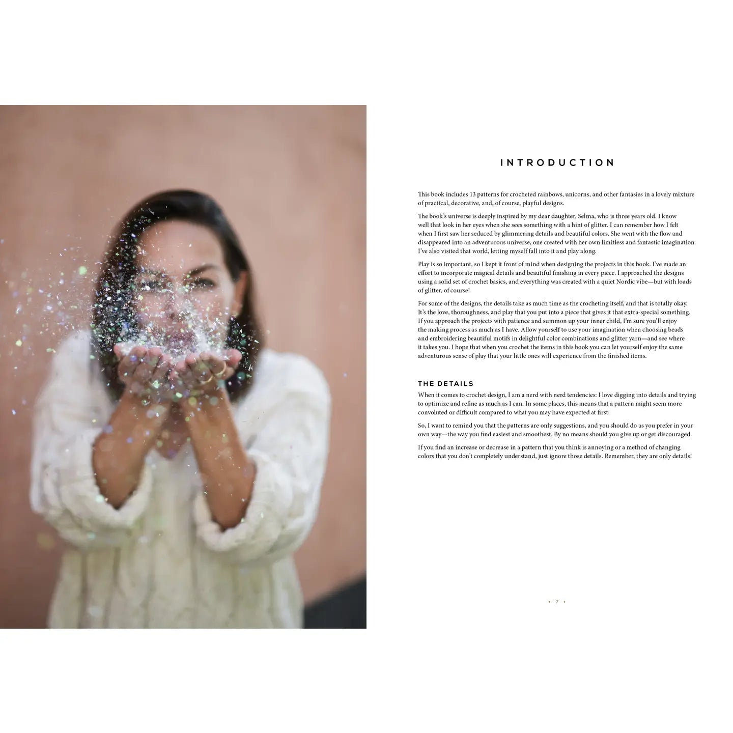 The 13 projects are eye-catchingly original and range in difficulty from simple to complex. Each features elements made from yarns that are shiny or glittering or offer some other magical gleam. All offer variations and customizing options for the creative crochet fan to enjoy, and result in beautiful items that can be used to decorate, wear, or play with. The projects are useful anywhere, from living rooms to fantasy worlds, and include essentials like a play crown that can be made in two heights, a backpack with a range of motifs to choose from, a banner perfect for any room, a protective sun hat, a rideable hobbyhorse unicorn, and a set of amazing wings to wear. These delightful designs reflect the reliably successful patterns and instructions that the author's known for among her design customers on Ravelry, at her shop aircrochet.com, and on her social media channels.