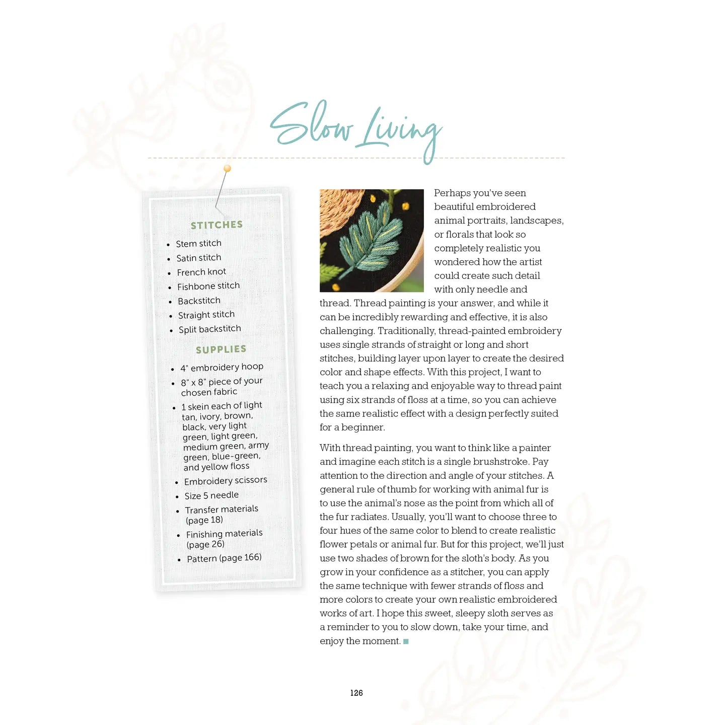 Modern embroidery projects, patterns, and instructions for absolute beginners and beyond! Inside this beautiful hardcover book, readers will find twelve modern embroidery projects featuring plants, flowers, and botanicals. Each includes step-by-step instructions, a quick reference chart, full-size patterns, helpful tips, and even a journal prompt.